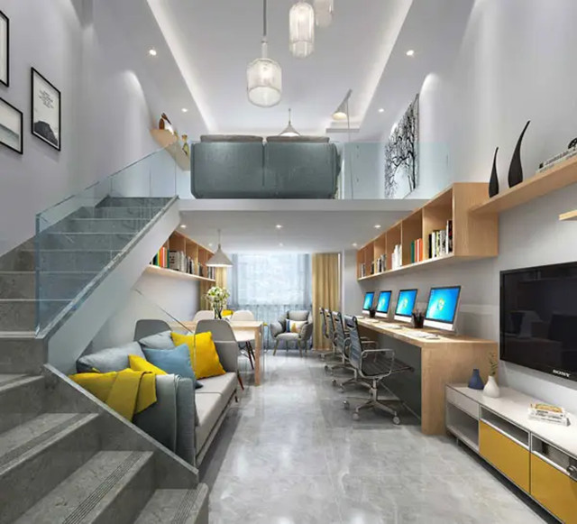 設計裝飾成公寓式辦公室的大多是商住樓和辦公公寓建筑,區(qū)別公寓式辦公室最大的特點就是除了日常辦公,其間還兼具有盥洗、寢室、日常生活等功能,即白天辦公,晚上休息的辦公住房一體的雙重功能空間。